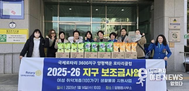 이번 기부는 2025~2026 국제로타리 3600지구 보조사업을 통해 마련된 것으로, 여성 가정의 일상생활에 실질적인 도움이 될 수 있도록 주방·세탁 세제로 구성됐다. 기부 물품은 양평읍을 통해 지원 대상 가정에 순차적으로 전달될 예정이다.