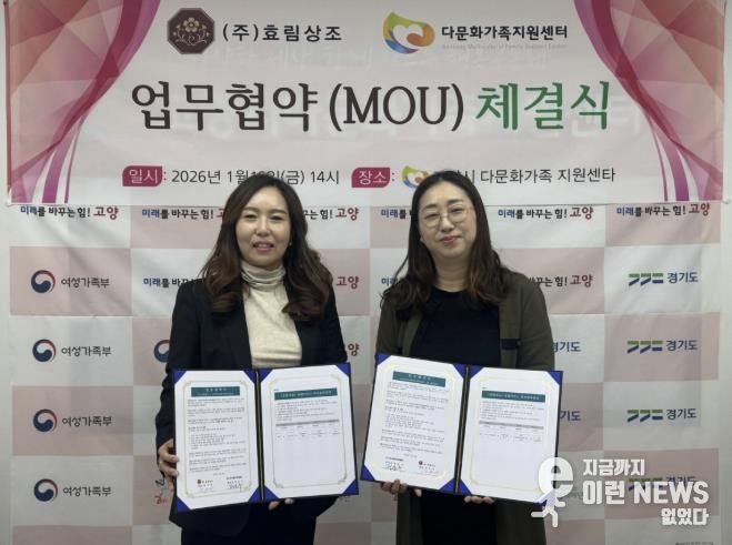 이런뉴스(e-runnews) 김삼성 기자 | 고양시다문화가족지원센터는 지난 16일, 효림상조와 다문화가정의 안정적인 일상지원과 지역사회 상생을 위한 업무협약(MOU)을 체결했다고 밝혔다.
