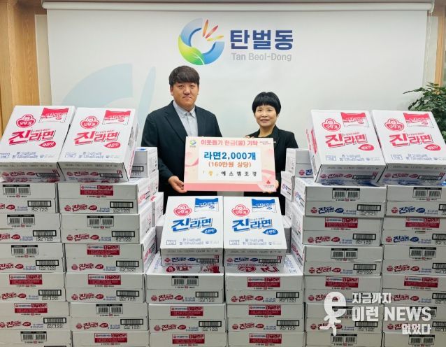 이런뉴스(e-runnews) 김삼성 기자 | 에스엠조경 임순옥 대표는 19일 광주시 탄벌동 행정복지센터에 지역 내 취약계층의 겨울철 생활 지원을 위한 라면 2천개를 기탁했다.