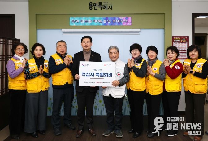 이런뉴스(e-runnews) 김삼성 기자 | 이상일 용인특례시장은 19일 시청 시장실에서 대한적십자사 경기도지사에 2026년도 적십자 특별회비 200만원을 전달했다.