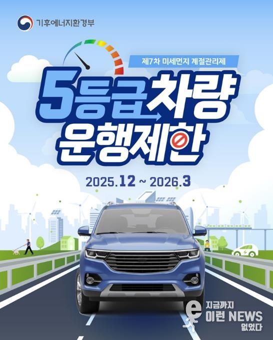 이런뉴스(e-runnews) 김삼성 기자 | 파주시는 제7차 계절관리제 기간인 2025년 12월부터 2026년 3월까지 배출가스 5등급 차량에 대한 단속을 실시하고 있다.