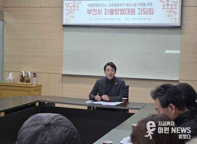 이런뉴스(e-runnews) 김삼성 기자 | 부천시의회 정창곤 의원(국민의힘, 심곡본1동·심곡본동·송내1·2동)은 지난 9일 부천시의회 세미나실에서 ‘자율방범대 초소, 도로점용허가 대상시설 규정을 위한 부천시 자율방범대원 간담회’를 개최했다.