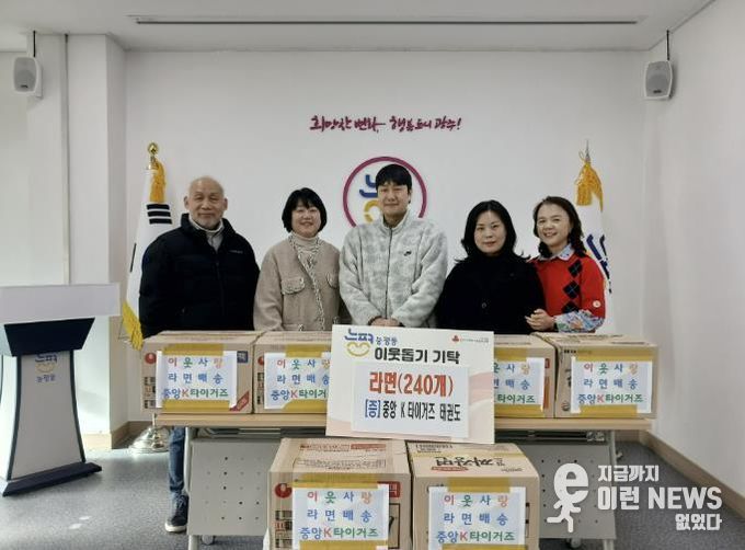 이런뉴스(e-runnews) 김삼성 기자 | 광주시 능평동에 위치한 중앙K타이거즈태권도는 29일 수련생들과 함께 마련한 라면 6박스를 광주시 능평동 행정복지센터에 전달했다.
