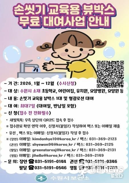 이런뉴스(e-runnews) 김삼성 기자 | 수원시보건소가 교육용 손씻기 체험 기구인 ‘뷰박스(View-box)’를 무료로 대여한다.
