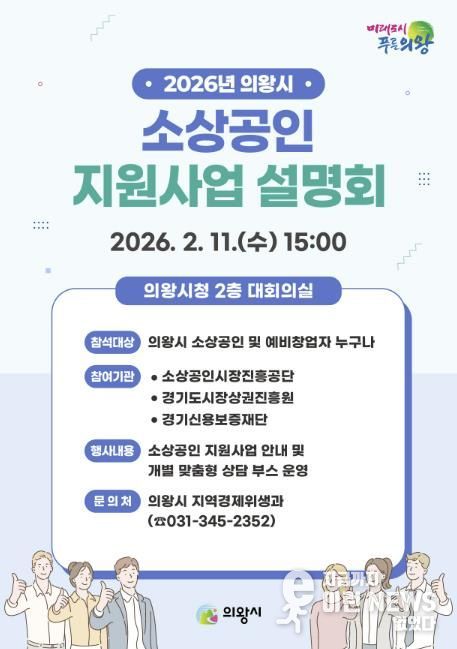 이런뉴스(e-runnews) 김삼성 기자 | 의왕시가 2월 11일 오후 3시, 시청 대회의실에서 ‘2026년 소상공인 지원사업 설명회’를 개최한다.