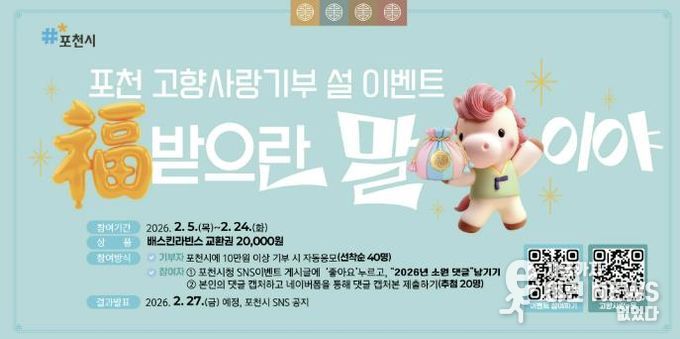 포천시 관계자는 “이번 이벤트가 고향사랑기부제에 대한 시민 관심을 높이고, 새해 소망을 함께 나누는 계기가 되길 바란다”며 “시민 모두가 따뜻하고 행복한 명절을 보내시길 기원한다”고 말했다.
