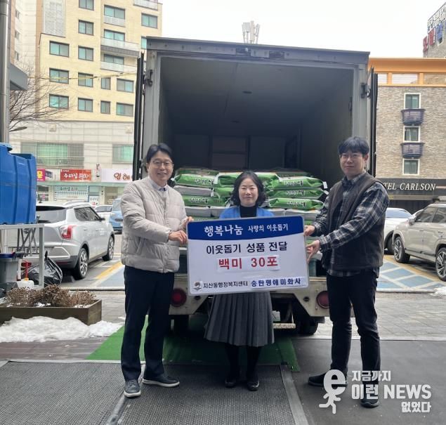 이런뉴스(e-runnews) 김삼성 기자 | 송탄평애미화사는 지난 4일 설 명절을 맞이하기 위하여 평택시 지산동 행정복지센터에 관내 취약계층을 위한 쌀 30포를 기부했다.