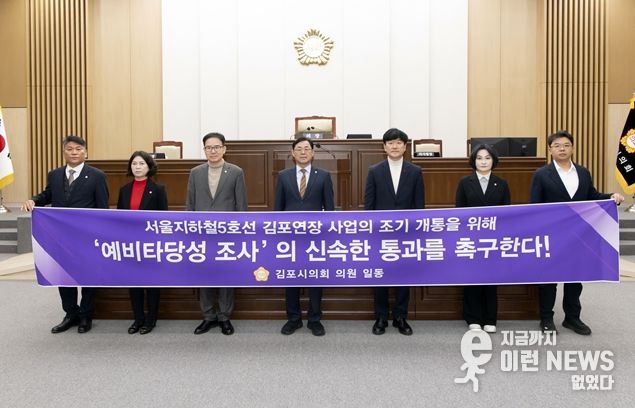 이런뉴스(e-runnews) 김삼성 기자 | 김포시의회는 5일 열린 제265회 임시회 제2차 본회의에서 시의원 14명이 공동으로 발의한 ‘서울지하철5호선 김포 연장사업 신속 예비타당성 조사 통과 촉구 결의안’을 채택했다.