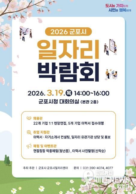 이런뉴스(e-runnews) 김삼성 기자 | 군포시는 오는 3월 19일 오후 2시부터 시청 대회의실에서 ‘2026년 군포시 일자리 박람회’를 개최함에 따라 2월 10일부터 2월 27일까지 박람회에 참여할 기업체를 모집한다.