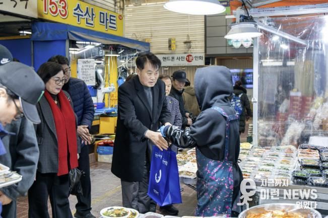 하 시장은 군포역전시장, 산본시장을 차례로 찾아 온누리상품권으로 떡, 과일, 전 등 먹거리 물품을 직접 구입했다. 전통시장을 돌며 시장 상인들과 새해 인사를 나누고 물가 상승 등으로 어려움을 겪고 있는 현장의 목소리를 경청하는 시간도 가졌다. 이날 구입한 물품은 관내 아동 및 청소년복지시설 5곳에 전달됐다.