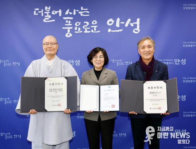 이런뉴스(e-runnews) 김삼성 기자 | 안성시는 2026년 2월 5일 오후 4시 30분 안성시청에서 '안성 청원사 대웅전'과'예기집설'의 ‘보물’ 지정 그리고 '경책신공문'의 ‘도유형문화유산’ 지정에 따른 증서를 소유자 및 소유단체에게 전달하는 수여식을 개최했다.