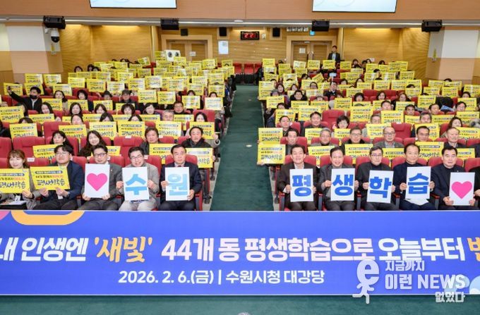 수원시는 6일 시청 대강당에서 ‘2026 수원시 평생학습 시민 설명회’를 열고, 올해 새롭게 동 평생학습센터 사업에 참여하는 34개 동에 현판을 전달했다.