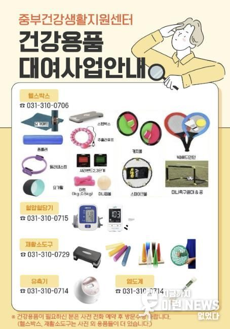 이런뉴스(e-runnews) 김삼성 기자 | 시흥시 중부건강생활지원센터는 시민의 건강생활 실천을 돕기 위해 헬스박스, 혈압ㆍ혈당, 염도계, 재활 소도구, 유축기 등 다양한 건강용품 대여 사업을 운영하고 있다.
