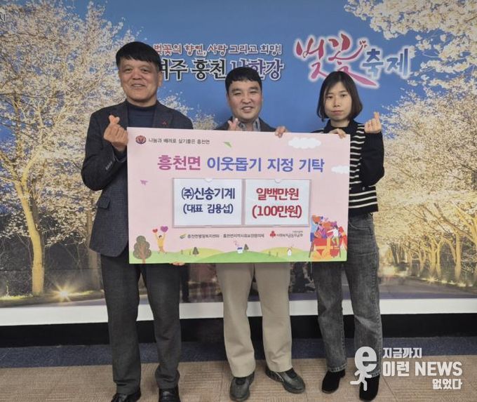 이런뉴스(e-runnews) 김삼성 기자 | (주)신송기계는 설 명절을 앞두고 지역 내 어려운 이웃들이 따뜻한 명절을 보낼 수 있도록 이웃돕기 성금 100만 원을 흥천면행정복지센터에 기탁했다.