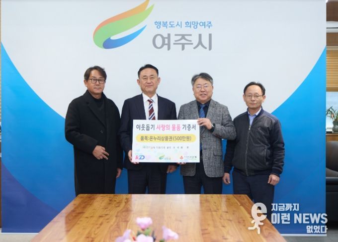 이런뉴스(e-runnews) 김삼성 기자 | KD운송그룹은 다가오는 설 명절을 맞아, 2월 6일 여주시청을 방문하여 관내 어려운 이웃들을 위한 온누리 상품권 500매(500만원 상당)를 기탁했다.