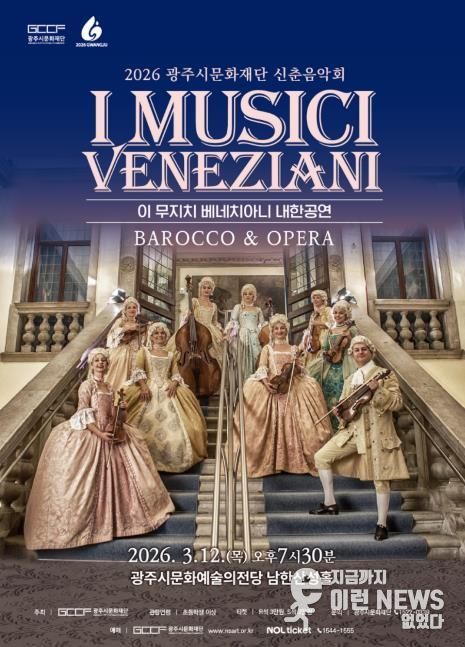 이런뉴스(e-runnews) 김삼성 기자 | (재)광주시문화재단은 2026년 신춘음악회로 이탈리아 베네치아니를 기반으로 활동해온 바로크앙상블 〈이 무지치 베네치아니(I Musici Veneziani) 내한공연 – Barocco & Opera〉를 개최한다. 이번 공연은 베네치아 황금시대의 음악과 문화를 무대 위에 생생히 재현하며, 관객들에게 클래식을 통한 특별한 시간여행을 선사할 예정이다.