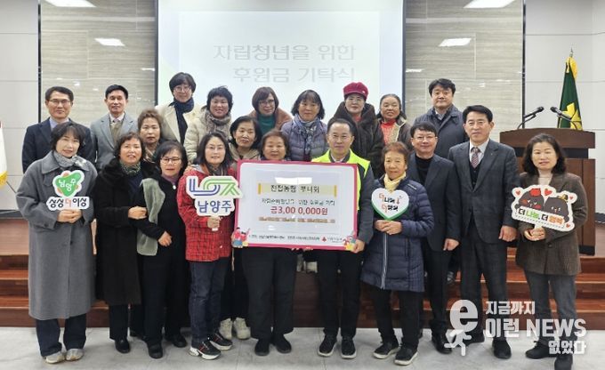 이런뉴스(e-runnews) 김삼성 기자 | 남양주시는 10일 진접농협부녀회가 관내 자립 준비 청년을 위한 후원금 300만 원을 진접읍 지역사회보장협의체에 전달했다고 밝혔다.