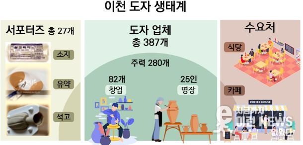이천은 전국에서도 손꼽히는 도자 집적지로, 380여 개의 도자공방과 함께 소지·유약·석고·제형 등 도자 생산을 뒷받침하는 서포터즈 업체들이 분포해 있으며, 외식업체와 생활소비 시장과도 맞닿아 있는 탄탄한 도자 기반을 갖추고 있다.
