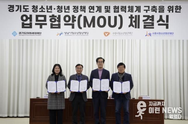 이런뉴스(e-runnews) 김삼성 기자 | (재)시흥시청소년청년재단은 지난 2월 12일 경기도청 옛청사 신관 4층 대회의실에서 경기도미래세대재단, 수원시청소년청년재단, 성남시청소년청년재단과 함께 ‘청소년ㆍ청년 정책 연계 및 협력체계 구축’을 위한 업무협약을 체결했다.