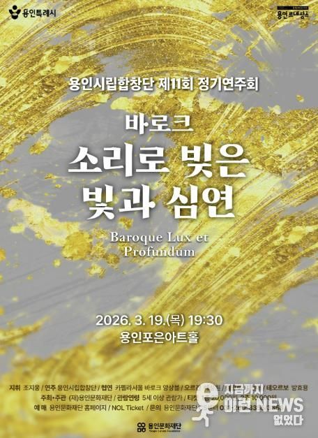 이런뉴스(e-runnews) 김삼성 기자 | 용인문화재단은 오는 3월 19일 오후 7시 30분, 포은아트홀에서 용인시립합창단 제11회 정기연주회 '바로크 – 소리로 빚은 빛과 심연'을 개최한다.