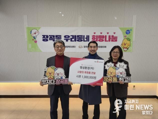 이런뉴스(e-runnews) 김삼성 기자 | 명성환경은 다가오는 설날을 맞아 지난 2월 12일 장곡동 행정복지센터에 시루 100만 원을 후원하며 이웃사랑 실천에 앞장섰다.