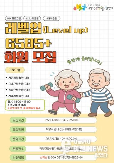 이런뉴스(e-runnews) 김삼성 기자 | 고양특례시 덕양구보건소 덕양건강생활지원센터가 관내 어르신의 체력 등급 향상을 위한‘레벨업(Level Up) 6585+’참여자를 모집한다.