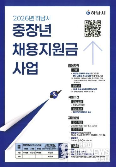 이런뉴스(e-runnews) 김삼성 기자 | 하남시가 지역 내 중장년 구직자의 재취업을 돕고 중소기업의 인력난을 해소하기 위해 ‘2026년 중장년 채용지원금 사업’을 본격적으로 추진한다고 밝혔다.