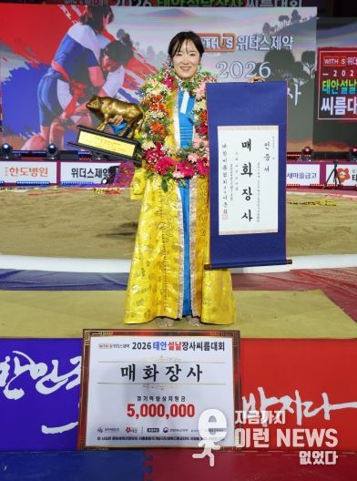 이런뉴스(e-runnews) 김삼성 기자 | 경남 유일의 여자씨름 실업팀인 거제시청씨름단이 지난 13일‘2026 태안설날장사씨름대회’에서 장사 2명을 배출하며 전국 무대에서 위상을 다시 한번 입증했다.
