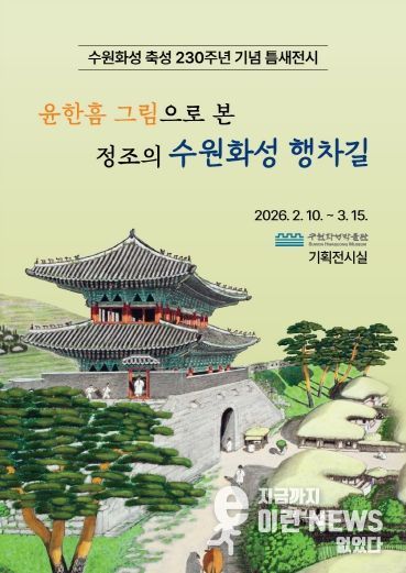 이런뉴스(e-runnews) 김삼성 기자 | 수원화성박물관이 수원화성 축성 230주년을 맞아 3월 15일까지 기획전시실에서 틈새전시 ‘윤한흠 그림으로 본 정조의 수원화성 행차길’을 개최한다.