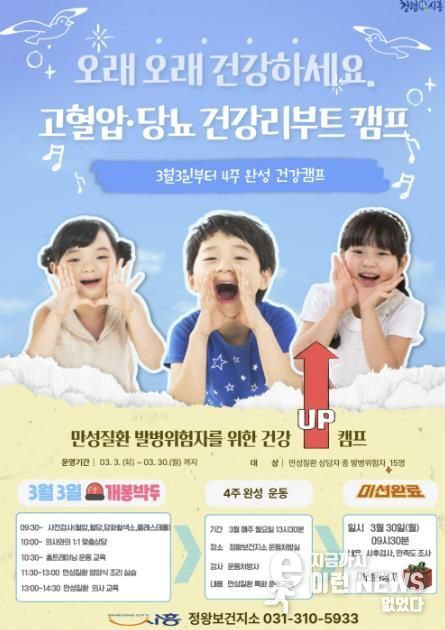 이런뉴스(e-runnews) 김삼성 기자 | 시흥시는 혈압ㆍ당뇨ㆍ이상지질혈증 경계 단계에 있는 시민 15명을 대상으로 만성질환 이환을 예방하기 위한 ‘고혈압ㆍ당뇨 건강 리부트 캠프’를 오는 3월 3일부터 4주간 운영한다.