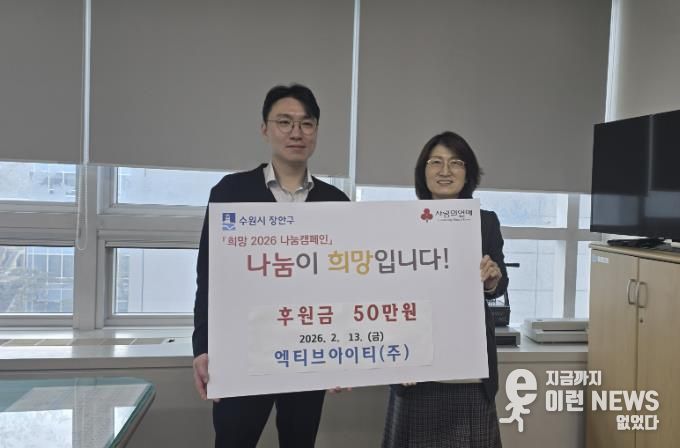 이런뉴스(e-runnews) 김삼성 기자 | 수원시 장안구에 위치한 엑티브아이티(주)가 지난 13일, 설 명절을 맞아 후원금 50만원을 장안구청에 기부했다.