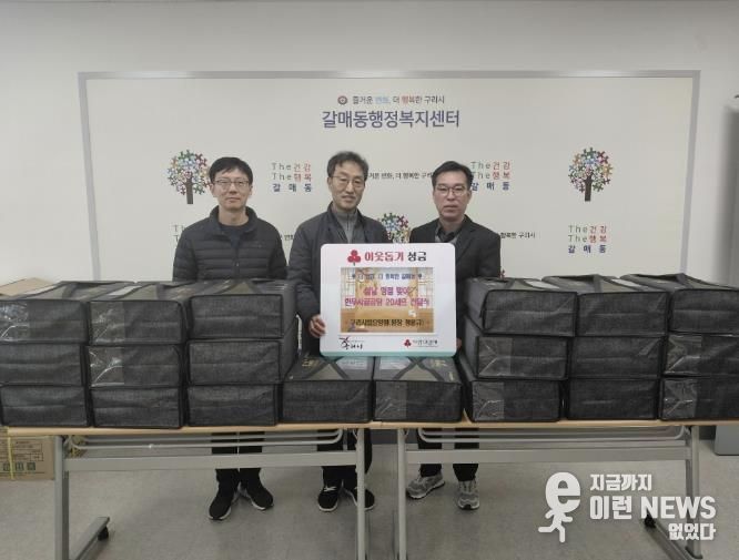 이런뉴스(e-runnews) 김삼성 기자 | 구리시 갈매동 행정복지센터는 지난 2월 13일 구리시립노인전문요양원으로부터 한우 국거리와 사골국물 20세트를 후원받고 설 명절맞이 후원 물품 전달식을 가졌다.