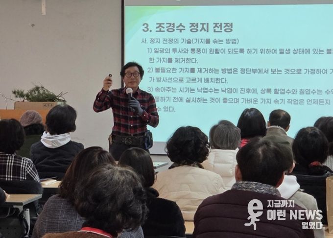 박건준 대표는 26년간 보호수·노거수 관리와 조경수 전지·전정 현장을 이끌어 온 수목 관리 전문가로, 이날 강연에서는 수목의 생리를 이해하는 방법부터 나무를 살리는 전지·전정의 원칙, 계절별 관리 요령, 시민정원사가 현장에서 바로 적용할 수 있는 실무 기술까지 폭넓은 내용을 전달했다.