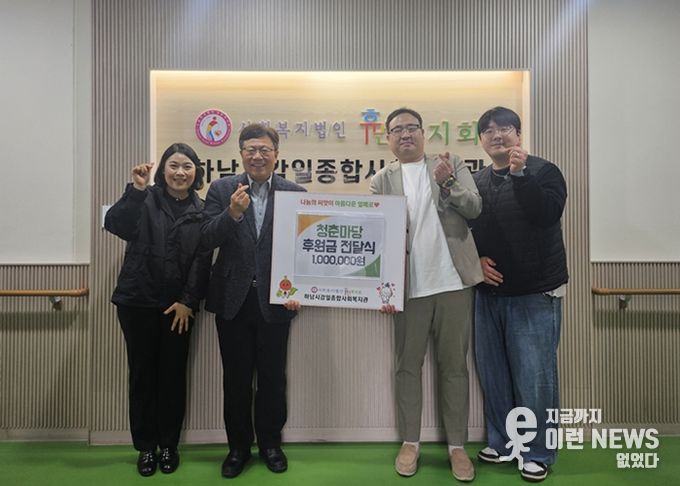 이런뉴스(e-runnews) 김삼성 기자 | 어린이·청소년 교육 공연을 운영하는 전문업체 청춘마당은 지역 취약계층 지원을 위해 2월 11일 하남시감일종합사회복지관(사회복지법인 휴먼복지회 운영)에 후원금 1백만원을 전달했다.