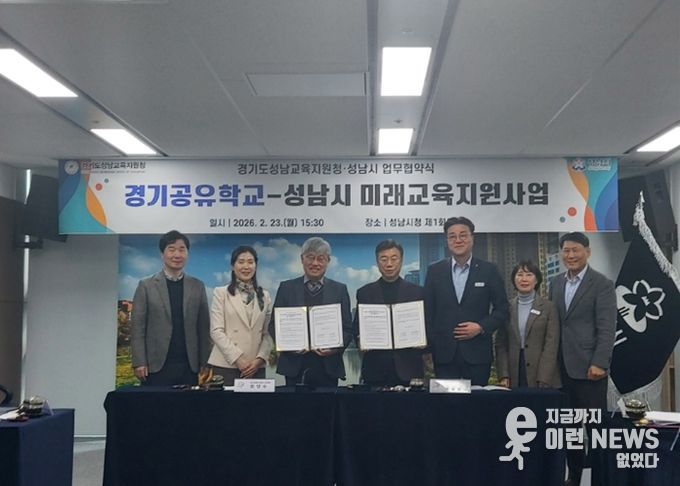 이런뉴스(e-runnews) 김삼성 기자 | 경기도성남교육지원청은 2월 23일 성남시와 함께 지역 중심의 미래교육 생태계 조성을 위한 ‘지역교육협력을 위한 경기공유학교-성남시 미래교육지원사업 업무협약’을 체결하고, 2026년도 세부 사업 추진을 위한 부속합의를 완료했다고 밝혔다.