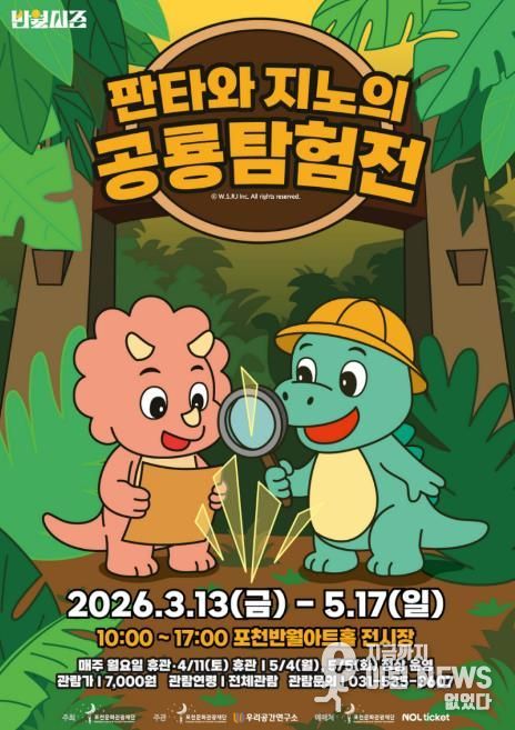 이런뉴스(e-runnews) 김삼성 기자 | 포천문화관광재단은 2026년 포천반월아트홀의 첫 번째 기획전시로 어린이 체험형 전시 ‘판타와 지노의 공룡탐험전’을 선보인다.