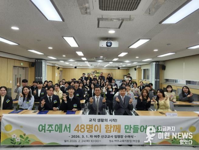이런뉴스(e-runnews) 김삼성 기자 | 경기도여주교육지원청은 2월 24일 여강홀에서 2026학년도 유·초·중등·특수·비교과 신규교사 48명을 대상으로 임명장 수여식을 개최하고, 미래 여주교육을 이끌 새로운 교사들의 힘찬 출발을 알렸다.