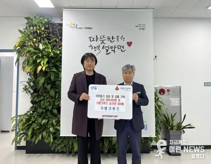 이런뉴스(e-runnews) 김삼성 기자 | 가평크루즈는 최근 가평군 설악면 행정복지센터를 방문해 관내 취약계층 지원을 위한 성금 90만원과 가평크루즈 승선권 300매를 기탁했다.
