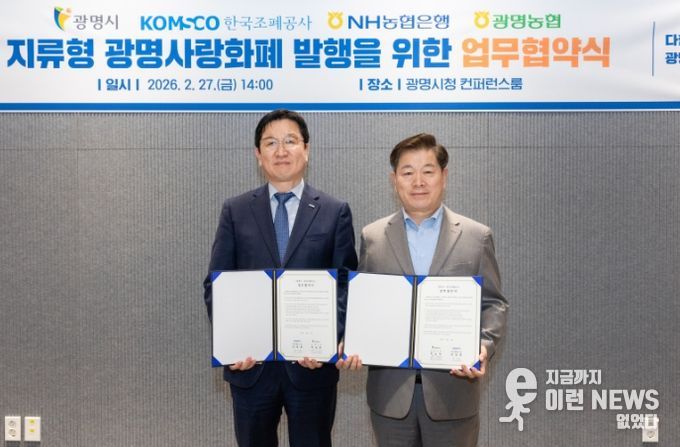 이를 위해 시는 27일 오후 시청 컨퍼런스룸에서 한국조폐공사, NH농협은행 광명시지부, 광명농협과 ‘지류형 광명사랑화폐 발행 및 운영을 위한 업무협약’을 체결했다.