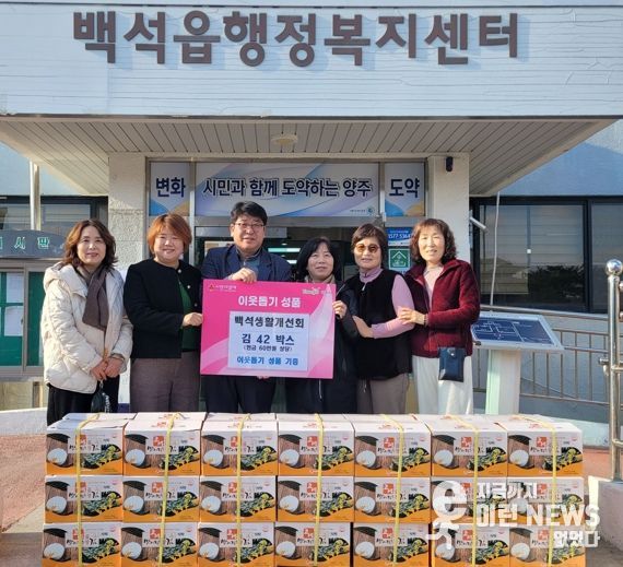 이런뉴스(e-runnews) 김삼성 기자 | 백석생활개선회가 지난 27일 백석읍 행정복지센터를 방문해 관내 취약계층을 위한 김 40박스를 기탁했다.