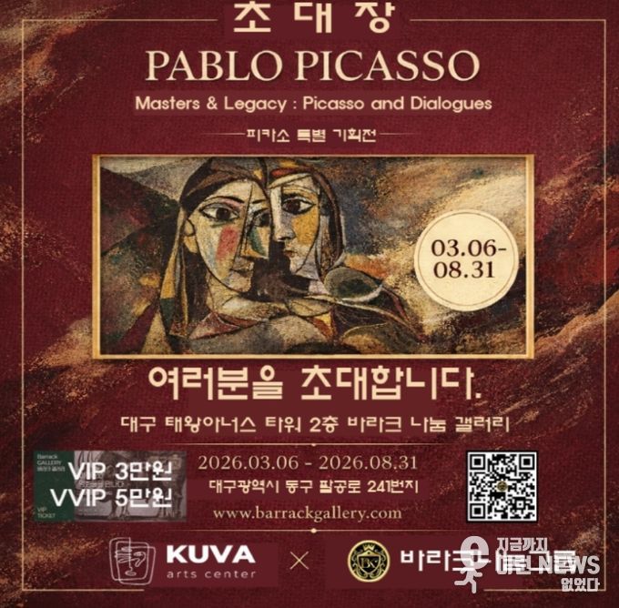 이런뉴스(e-runnews) 김삼성 기자 | 한 도시의 전시장이 한 시대의 미술사를 온전히 담아내는 일은 결코 가벼운 과제가 아니다. 2026년 3월 6일부터 8월 31일까지 대구 동구 봉무동 바라크나눔갤러리에서 열리는 피카소 인 대구 피카소와 전설의 거장들 특별전은 이러한 학술적 무게를 정면으로 다루며 지역 문화계에 새로운 이정표를 제시한다. 이번 전시는 단순히 세계적 명화를 나열하여 선보이는 단발성 행사를 넘어 20세기 미술이 형성해온 사유의 구조를 하나의 정교한 큐레이토리얼 맥락 안에서 재구성하려는 기획이다.