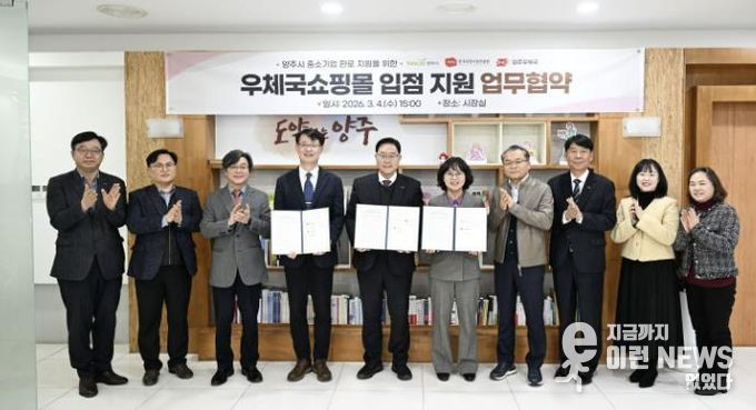 이런뉴스(e-runnews) 김삼성 기자 | 양주시가 지난 4일 한국우편사업진흥원, 양주우체국과 함께 관내 중소기업의 온라인 유통망 확대를 위한 ‘우체국 입점 지원 업무협약’을 체결했다.