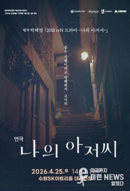 수원문화재단 관계자는 “수원SK아트리움은 전 세대가 공감할 수 있는 우수한 기획 공연을 꾸준히 선보여 왔다”며, “이번 ‘나의 아저씨’에서는 각자의 삶을 돌아보게 하는 따뜻한 이야기를 선보일 예정으로, 가족, 연인, 친구와 함께 공연장에서 봄날의 특별한 시간을 보내시길 바란다”고 전했다.