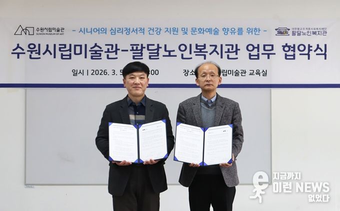 이런뉴스(e-runnews) 김삼성 기자 | 경기도 수원시립미술관과 수원시 팔달노인복지관은 5일 관내 시니어의 문화예술 향유 활성화를 위한 업무협약을 체결했다.