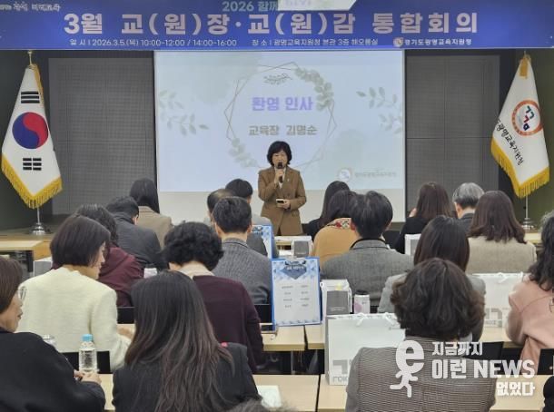 이런뉴스(e-runnews) 김삼성 기자 | 경기도광명교육지원청은 3월 5일, 광명교육지원청 3층 해오름실에서 2026 해오름 광명교육과 경기미래교육 구현을 위한 ‘2026년 3월 교(원)장, 교(원)감 통합회의’를 운영했다. 이번 통합회의는 학년 초 학교와 교육지원청, 도교육청 간의 협력을 강화하고, 학교 중심의 교육정책, 미래장학, 교육과정운영의 선순환 체제를 통해 학교 중심 행정 지원의 기틀을 마련하고자 진행됐다.