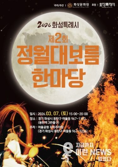 이런뉴스(e-runnews) 김삼성 기자 | ‘2026년 화성특례시 제2회 정월대보름 한마당’이 오는 3월 7일 오후 3시부터 8시까지 동탄역 3번 출구 앞 광장에서 열린다.