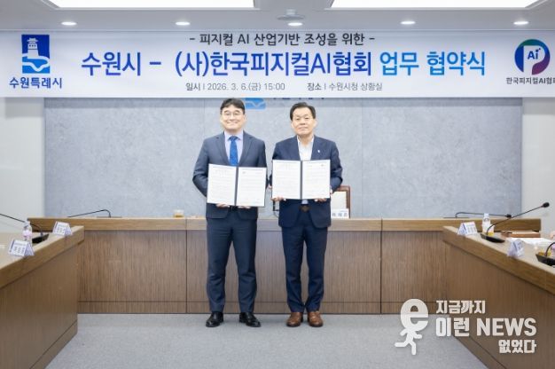 이런뉴스(e-runnews) 김삼성 기자 | 수원특례시와 (사)한국피지컬에이아이(AI)협회는 6일 시청 상황실에서 업무협약을 체결하고, 피지컬 인공지능(AI) 산업 활성화를 위해 적극적으로 협력하기로 했다.