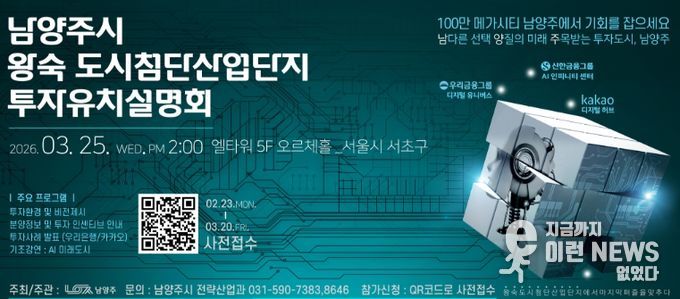 이런뉴스(e-runnews) 김삼성 기자 | 남양주시는 오는 25일 서울 서초구 엘타워에서 ‘왕숙 도시첨단산업단지 투자유치설명회’를 개최하고, 첨단산업 투자거점으로 급부상하는 시의 투자환경을 기업에 소개한다고 밝혔다.