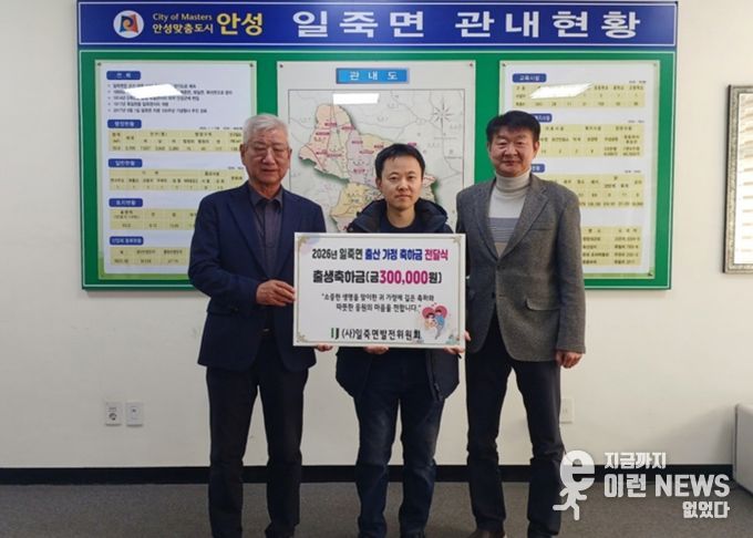 앞서 (사)일죽면발전위원회는 지역 공동체 활성화와 출생 장려를 위해 2026년 3월부터 일죽면에서 태어난 출생아 가정에 30만 원 상당의 축하금을 전달하기로 결정한 바 있다.