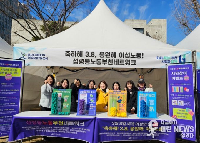 특히 지난 8일, ‘2026 부천국제 10km 로드레이스’의 부대행사가 열린 부천시청 잔디광장에서 ‘성평등노동부천네트워크’는 성평등한 노동환경 조성을 주제로 ‘폼폼 투표’ 체험 이벤트 부스를 운영했다. 이날 행사에는 대회 참가자와 시민 1,300여 명이 방문하여 주요 노동 이슈에 대해 함께 공감하는 등 인식개선에 뜻을 모았다. 특히 많은 시민들이 ‘성별임금격차 해소’, ‘고용안정’의 필요성에 가장 많은 공감을 표했다.